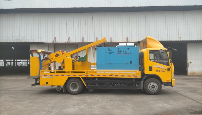 该车选用解放底盘,功率118kw 。本产品具有对高等级公路防撞护栏进行打桩、拔桩、钻孔,且可以转270度左右 旋转,左右侧施工不需要调头等功能,打、拔桩一体,可装载作业材料、安装了共四条内弧形铝管结构,当碰撞发生 时,弧形铝管将首先受力变形,吸收冲击能量。可靠性好、操作简单、维修方便、无需逆行、安全性高、工作效率高、 劳动强度低、经济实用。