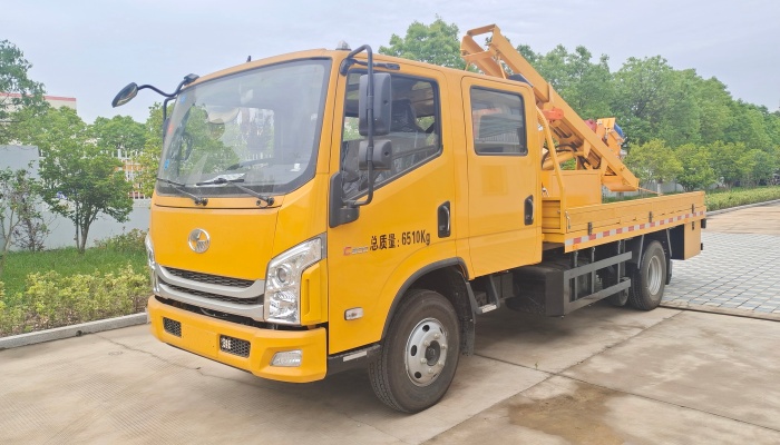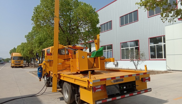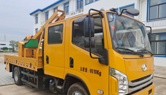 该车选用跃进SH1083ZFDDMS2 底盘,发动机功率125kw。 可实现山区作业,爬坡性能好。打、拔桩一体,可装载 作业材料、可靠性好、操作简单、维修方便、无需逆行、安全性高、工作效率高、劳动强度低、经济实用。一台抢修车 即可完成防撞护栏的维修施工全部工作。