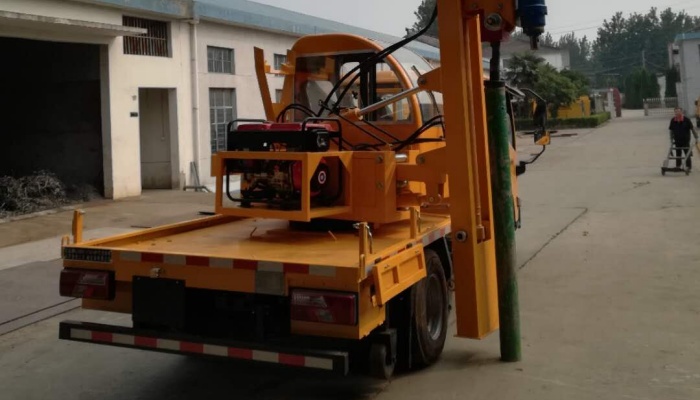 该车选用江铃N800底盘,功率95kw, 配备工作台驾驶室。打、拔桩一体,可装载作业材料、可靠性好、操作简单、维 修方便、无需逆行、安全性高、工作效率高、劳动强度低、经济实用。一台抢修车即可完成防撞护栏的维修施工全部工作。