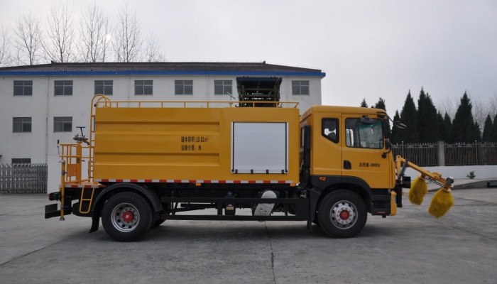 该车采用东风底盘,发动机功率为154kw。 该车主要装置为护栏清洗装置,用于公路护栏清洗、洒水、绿化浇 灌等。