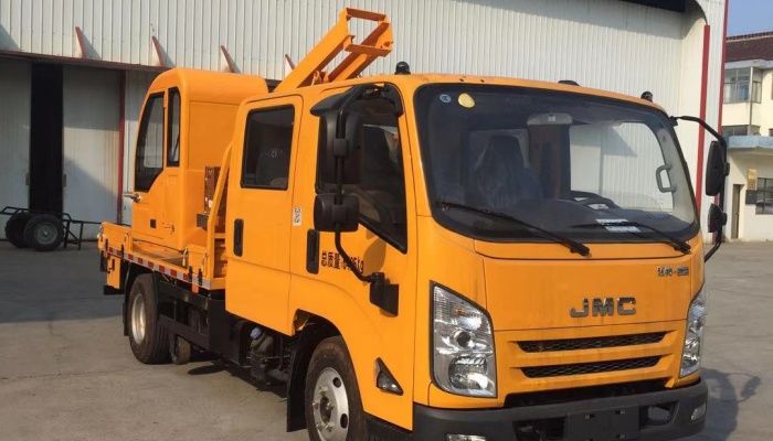 该车选用江铃N800底盘,功率95kw, 配备工作台驾驶室。打、拔桩一体,可装载作业材料、可靠性好、操作简单、维 修方便、无需逆行、安全性高、工作效率高、劳动强度低、经济实用。一台抢修车即可完成防撞护栏的维修施工全部工作。