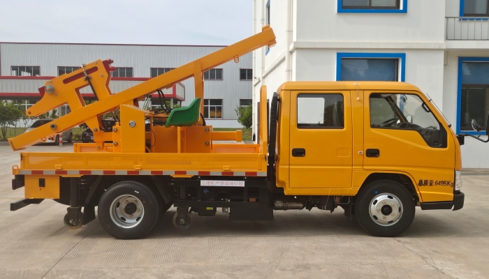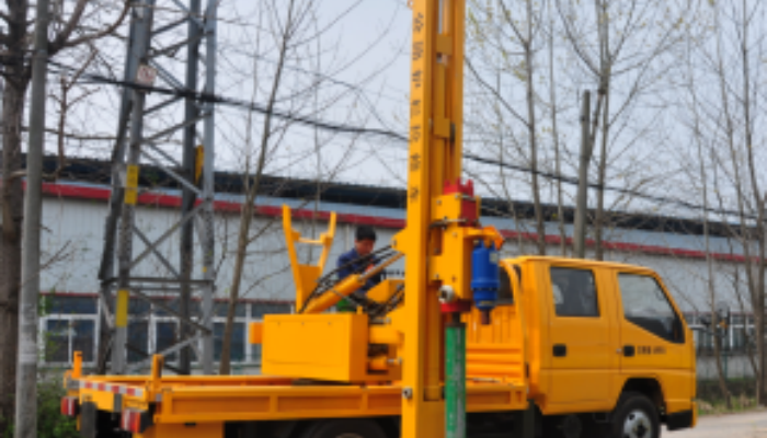 该车选用江铃JX1061TSGA26 底盘,打、拔桩一体,可装载作业材料、可靠性好、操作简单、维修方便、无需逆 行、安全性高、工作效率高、劳动强度低、经济实用。一台抢修车即可完成防撞护栏的维修施工全部工作。
