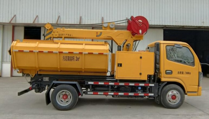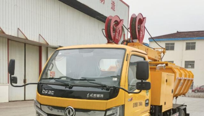 该车采用东风底盘,发动机功率103kw 。该车专用装置为挖掏疏通装置,主要用于疏通下水道、清理下水道管道 及沉降池污泥。