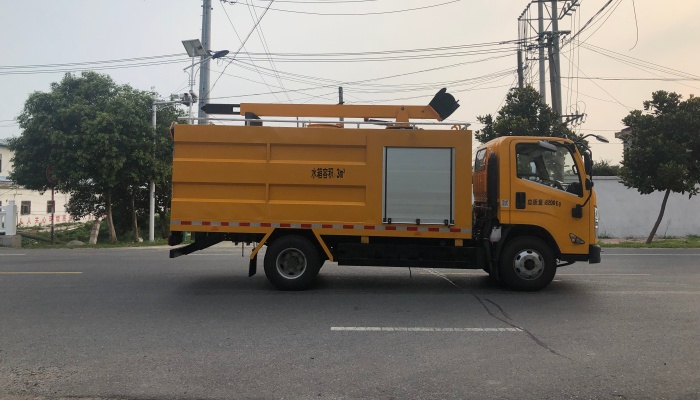 该车采用江铃底盘,发动机功率112kw。该车专用装置挖掏疏通装置;主要用于清除城市下水道横井的沉积物, 淤泥,生活垃圾。