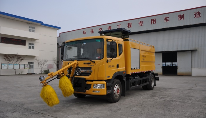 该车采用东风底盘,发动机功率为154kw。 该车主要装置为护栏清洗装置,用于公路护栏清洗、洒水、绿化浇 灌等。