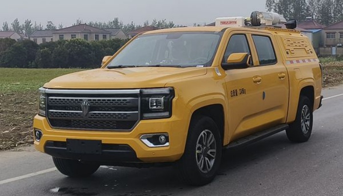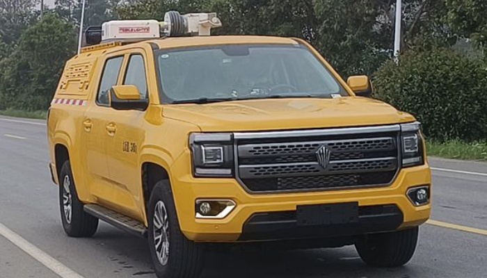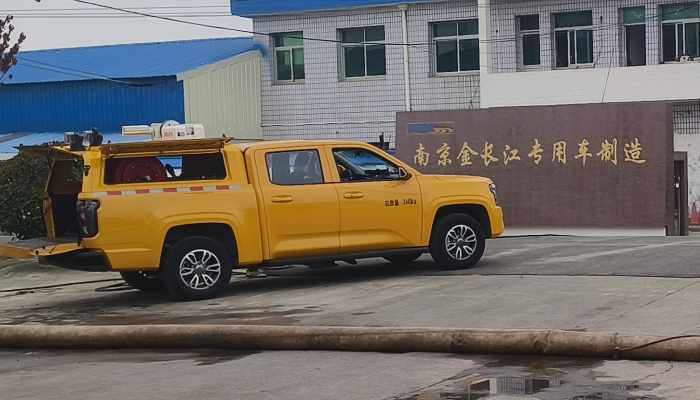 该车选用优质江铃大道国VI皮卡车底盘,在皮卡车后货箱上装配防雨厢罩。车厢内配置液压排涝抢险便携式潜水 泵,液压潜水泵、渣浆泵,适应各种抢险工况,车厢顶上可选装遥控探照灯、长排警示灯;随车配排水管、水泵控制 等。