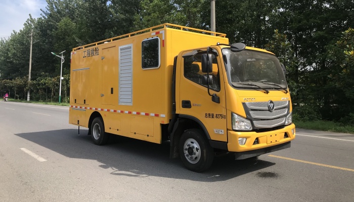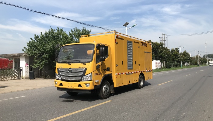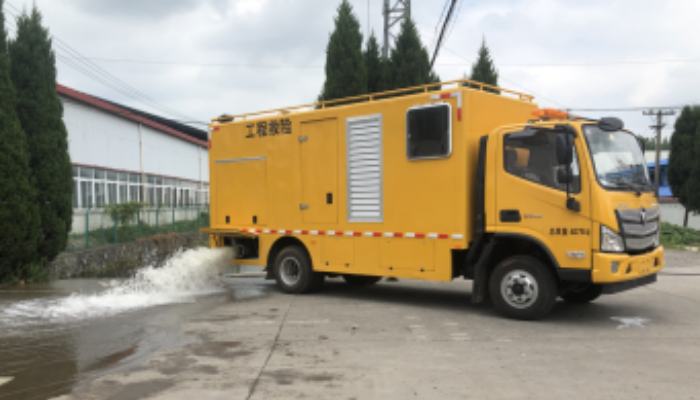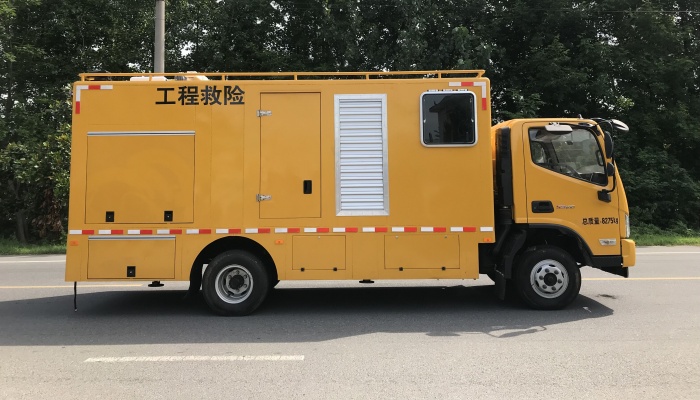 该车选用优质福田国VI底盘,发动机功率为115/125kw。 该车专用装置 应急供电排水装置,主要用于应急救险需 要,可应急发电,应急救险时抽排污水。